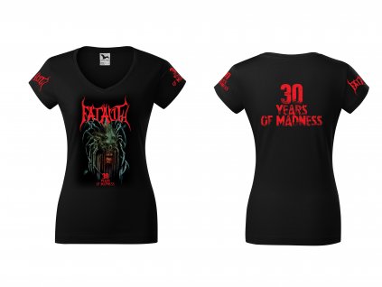 Černé dámské triko Death on Arrival s potiskem. lehce vypasovaný střih s bočními švy průkrčník lemován vrchovým materiálem zpevnění ramenních švů páskou rukávy kratší...