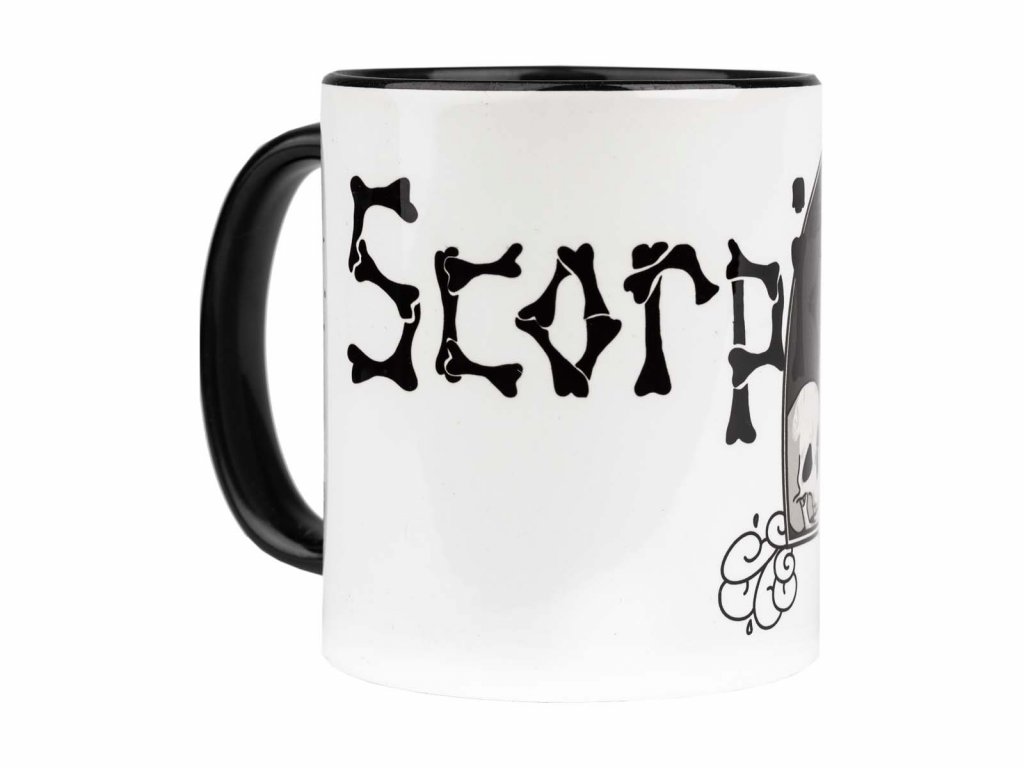 Bílý keramický hrnek s černým vnitřkem a uchem, s potiskem.